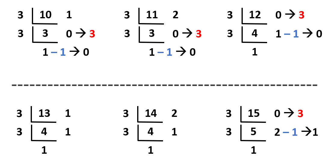 - 10진법 숫자를 3으로 나눌 수 없을 때까지 나눈다.